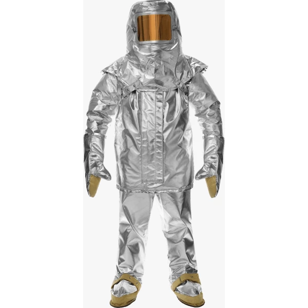 Lakelands Heat Reflective 700 Series Proximity Ensemble is designed to protect workers from low ambient, high radiant heat. 700AG is configured with hood, coat, pant, boots, gloves, suspenders, as well as an additional steam barrier lining for extra protection against hot liquids, steam, and vapor. Available in sizes SM-3X, these multi-layered suits are ideal for users working in power plants, cement manufacturers, chemical processing, and similar industries.